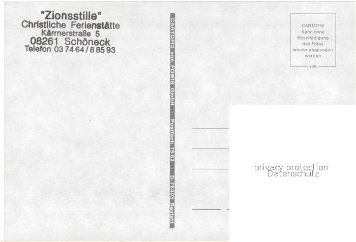 73658297 Schoeneck Vogtland Christliche Ferienstaette Zionsstille postalisch nicht gelaufen Erhaltung siehe scans [FriedD77] KatCode: 11110014178610