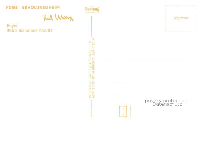 72966776 Schoeneck Vogtland FDGB-Erholungsheim postalisch nicht gelaufen Erhaltung siehe scans [LiesaD40] KatCode: 11110014178610