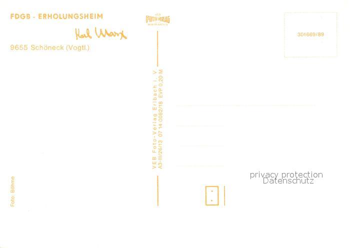 73145123 Schoeneck Vogtland FDGB Erholungsheim Marx Wegweiser Grillplatz am Wasser postalisch nicht gelaufen Erhaltung siehe scans [FriedD77] KatCode: 11110014178610