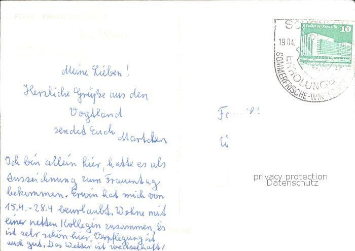 72334125 alte Postkarte Schoeneck Vogtland FDGB Erholungsheim Restaurant postalisch gelaufen Erhaltung siehe scans KatCode: 11110014178610