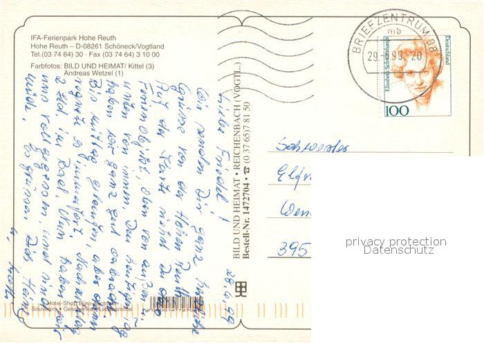 73742680 alte Postkarte Schoeneck Vogtland Ferienpark Hohe Reuth Zimmer Hallenbad Gastraum postalisch gelaufen Erhaltung siehe scans [WerneD78] KatCode: 11110014178610