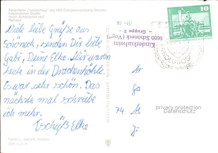 72333885 alte Postkarte Schoeneck Vogtland Hotel Schoenecker Hof Falkensteiner Strasse postalisch gelaufen Erhaltung siehe scans KatCode: 11110014178610