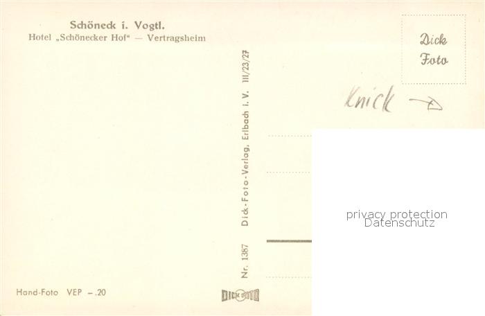 73721820 Schoeneck Vogtland Hotel Schoenecker Hof – Vertragsheim Winter postalisch nicht gelaufen Erhaltung siehe scans [LiesaD40] KatCode: 11110014178610