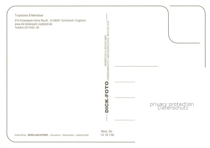 73742648 Schoeneck Vogtland IFA Ferienpark Schoeneck Tropisches Erlebnisbad Details postalisch nicht gelaufen Erhaltung siehe scans [WerneD78] KatCode: 11110014178610