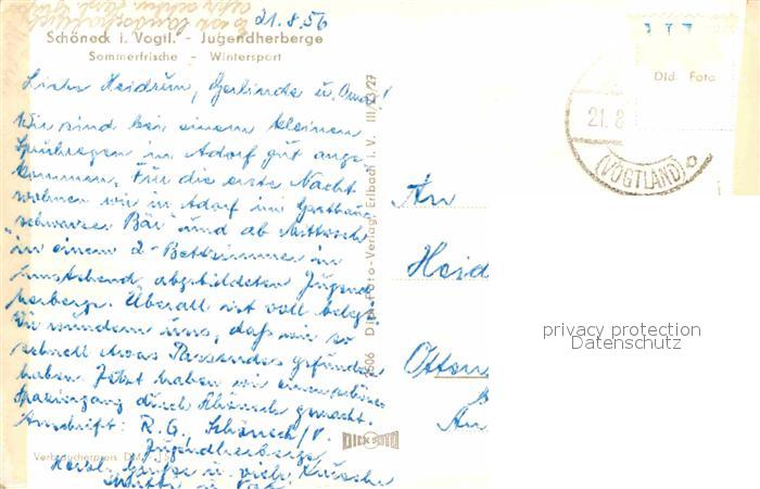 72640492 alte Postkarte Schoeneck Vogtland Jugendherberge postalisch gelaufen Erhaltung siehe scans [NatalD47] KatCode: 11110014178610