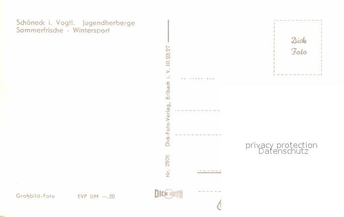72634577 Schoeneck Vogtland Jugendherberge postalisch nicht gelaufen Erhaltung siehe scans [KathaD79] KatCode: 11110014178610