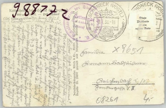 70028578 alte Postkarte Schoeneck Vogtland ottenheide Fliegeraufnahme postalisch gelaufen KatCode: 11110014178610