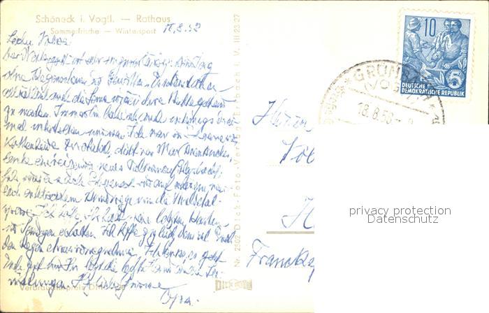 72435468 alte Postkarte Schoeneck Vogtland Rathaus postalisch gelaufen Erhaltung siehe scans KatCode: 11110014178610