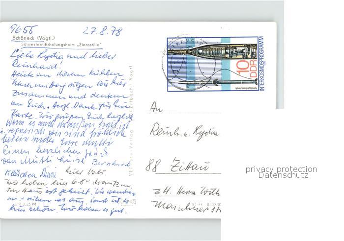 71963420 alte Postkarte Schoeneck Vogtland Schwestern Erholungsheim Zionsstille postalisch gelaufen Erhaltung siehe scans KatCode: 11110014178610