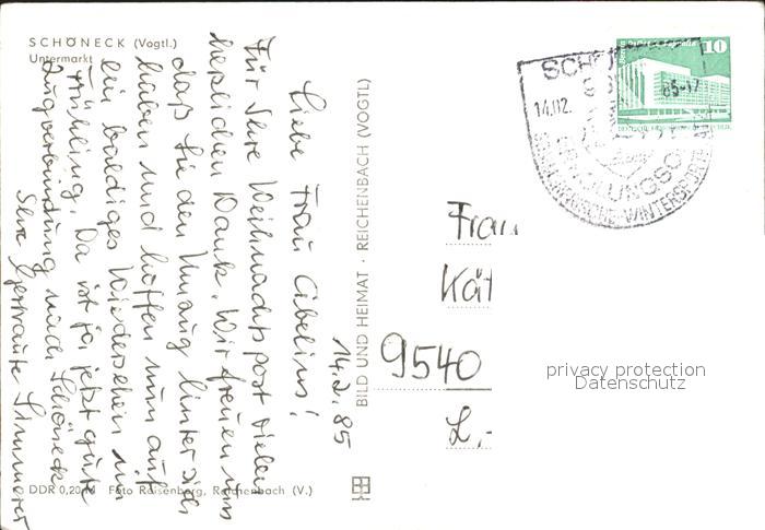 72326172 alte Postkarte Schoeneck Vogtland Untermarkt postalisch gelaufen Erhaltung siehe scans KatCode: 11110014178610