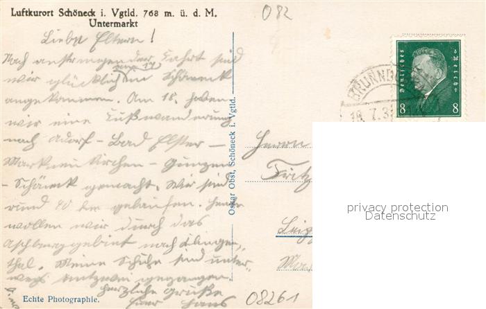 43056968 alte Postkarte Schoeneck Vogtland Untermarkt Kirche postalisch gelaufen Erhaltung siehe scans [KathaD81] KatCode: 11110014178610