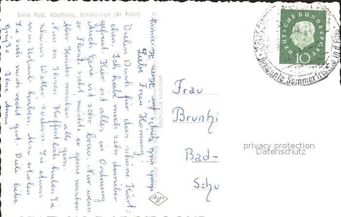 72199082 alte Postkarte Schoenecken Stadt Burg postalisch gelaufen Erhaltung siehe scans KatCode: 11110007232304