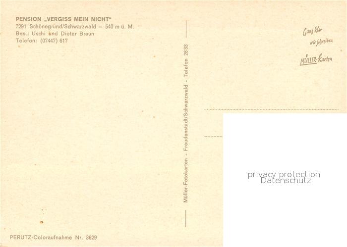 73644348 Schoenegruend Pension Vergiss mein nicht Landschaftspanorama Schwarzwald Wild postalisch nicht gelaufen Erhaltung siehe scans [FriedD77] KatCode: 11110008237004