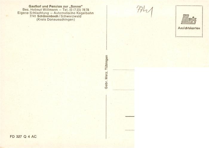 73941579 Schoenenbach Furtwangen Gasthof Pension zur Sonne Gastraum postalisch nicht gelaufen Erhaltung siehe scans [WerneD78] KatCode: 11110008326017