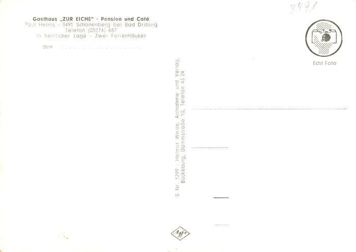 73878685 Schoenenberg Bad Driburg Gasthaus zur Eiche Pension Cafe Bungalow Teich postalisch nicht gelaufen Erhaltung siehe scans [FriedD77] Frie Katcode 11110005762004