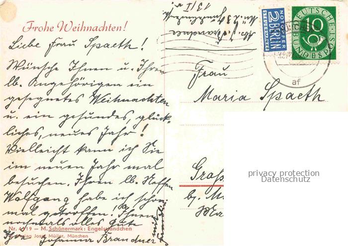74091711 alte Postkarte SCHoeNERMARK M. Kuenstlerkarte Engelstaendchen Weihnachten Nr. 4319 Muenchen postalisch gelaufen Erhaltung siehe scans [SanaeD93] KatCode: 22240000003200