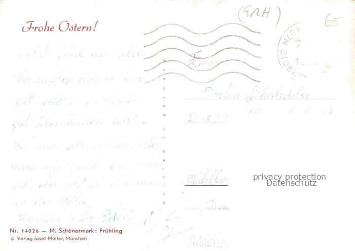 74152736 alte Postkarte SCHoeNERMARK M. Kuenstlerkarte Nr. 14026 Fruehling Ostern postalisch gelaufen Erhaltung siehe scans [IrynaD87] KatCode: 22240000003200