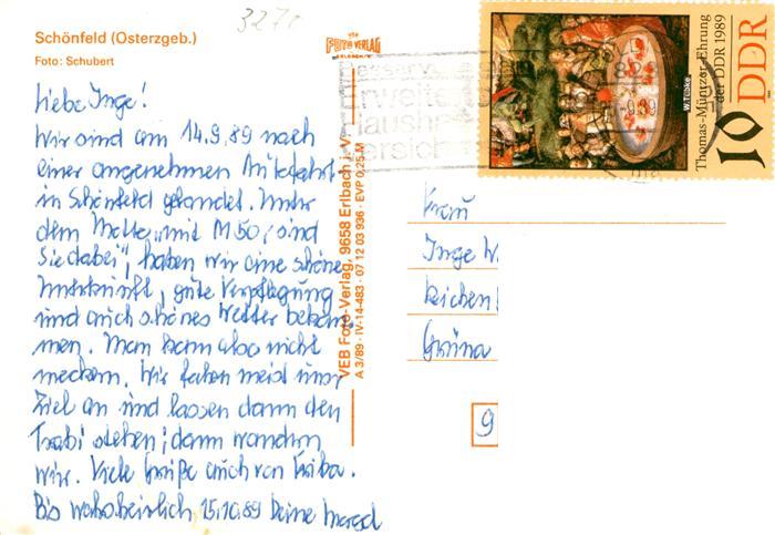 73921595 Schoenfeld Dippoldiswalde Osterzgebirge Panorama Teilansichten postalisch gelaufen Erhaltung siehe scans [WerneD78] alte Postkarte Wern Katcode 11110014290080