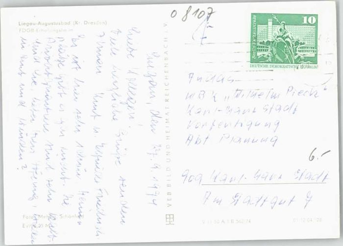 old postcard Schoenfeld irgau Augustusbad postalisch gelaufen