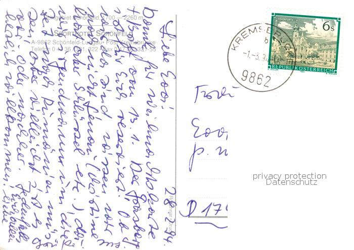 73360427 alte Postkarte Schoenfeld Lungau Sporthotel Winterlandschaft Alpen postalisch gelaufen Erhaltung siehe scans [FriedD77] KatCode: 11390321050510