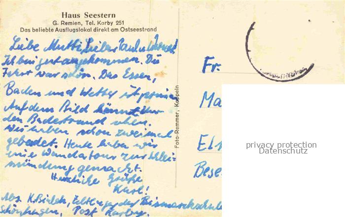 74120652 alte Postkarte Schoenhagen Brodersby Ostseebad Gaststaette Restaurant Haus Seestern am Strand postalisch gelaufen Erhaltung siehe scans [FriedD77] KatCode: 11110001058032