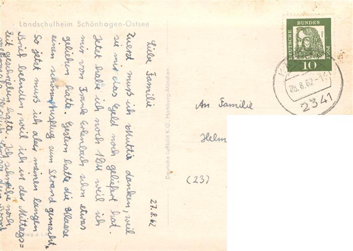 73904523 alte Postkarte Schoenhagen Brodersby Ostseebad Landschulheim Schoenhagen Fliegeraufnahme postalisch gelaufen Erhaltung siehe scans [WerneD78] KatCode: 11110001058032