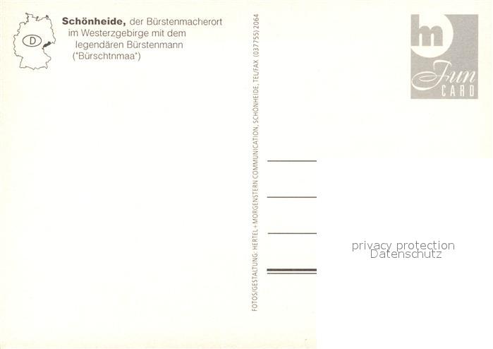 73334912 Schoenheide Erzgebirge Buerstenmacherort mit Buerstenmann postalisch nicht gelaufen Erhaltung siehe scans [LiesaD40] KatCode: 11110014191290