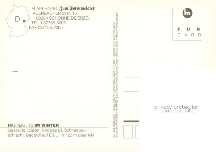 73741751 Schoenheide Erzgebirge Flair Hotel Zum Forstmeister Schlittenfahrt Heissluftballons postalisch nicht gelaufen Erhaltung siehe scans [WerneD78] KatCode: 11110014191290