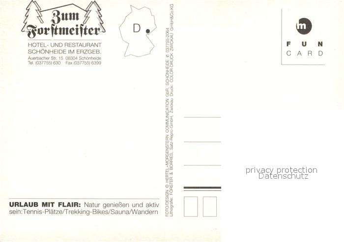 73335832 Schoenheide Erzgebirge Hotel Restaurant Zum Forstmeister postalisch nicht gelaufen Erhaltung siehe scans [PaolaD17] KatCode: 11110014191290