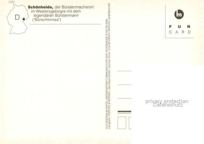 73741752 Schoenheide Erzgebirge Panorama Legendaerer Buerstenmann postalisch nicht gelaufen Erhaltung siehe scans [WerneD78] KatCode: 11110014191290