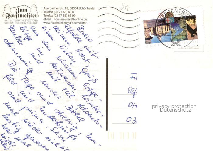 73780376 alte Postkarte Schoenheide Erzgebirge Zum Forstmeister Flair Hotel postalisch gelaufen Erhaltung siehe scans [WerneD78] KatCode: 11110014191290