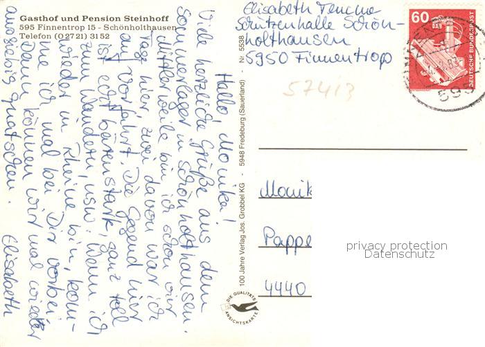 73865675 alte Postkarte Schoenholthausen Ansicht mit Kirche Gasthof Pension Steinhoff postalisch gelaufen Erhaltung siehe scans [FriedD77] KatCode: 11110005966012