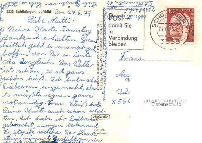 73634565 alte Postkarte Schoeningen Fliegeraufnahme postalisch gelaufen Erhaltung siehe scans [WerneD78] KatCode: 11110003154019