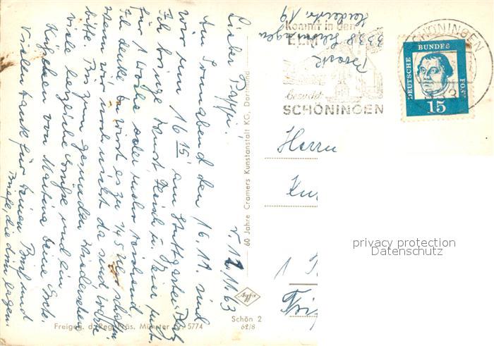 33658905 alte Postkarte Schoeningen Fliegeraufnahme postalisch gelaufen Erhaltung siehe scans [WerneD78] KatCode: 11110003154019