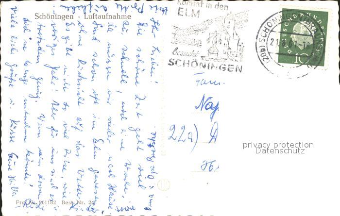 31720833 alte Postkarte Schoeningen Fliegeraufnahme postalisch gelaufen Erhaltung siehe scans KatCode: 11110003154019
