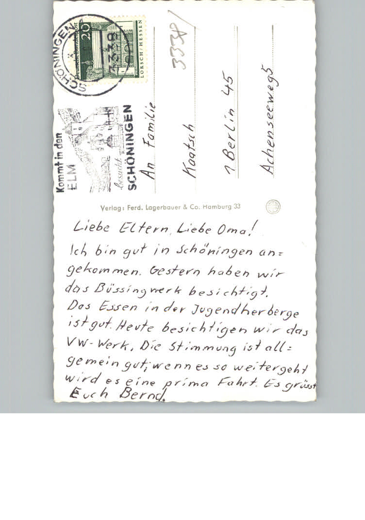 31167664 Schoeningen Jugendherberge postalisch nicht gelaufen KatCode: 11110003154019