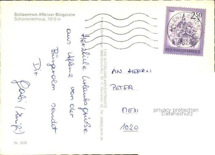 72549011 alte Postkarte Schoenleitenhuette Buergeralm postalisch gelaufen Erhaltung siehe scans [LiesaD40 kv021box] KatCode: 11390322050618