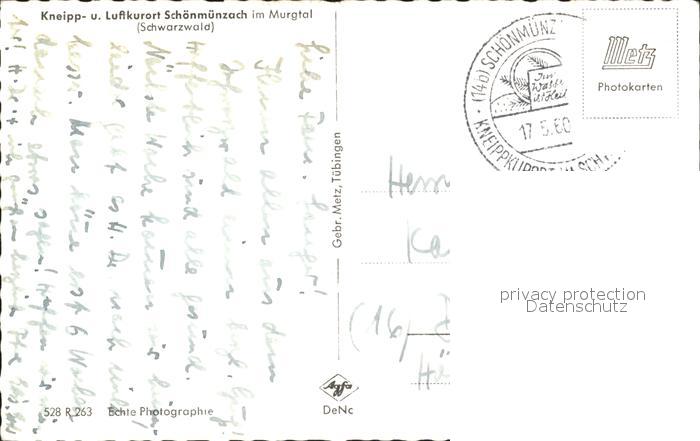 32099425 alte Postkarte Schoenmuenzach postalisch gelaufen Erhaltung siehe scans KatCode: 11110008237004