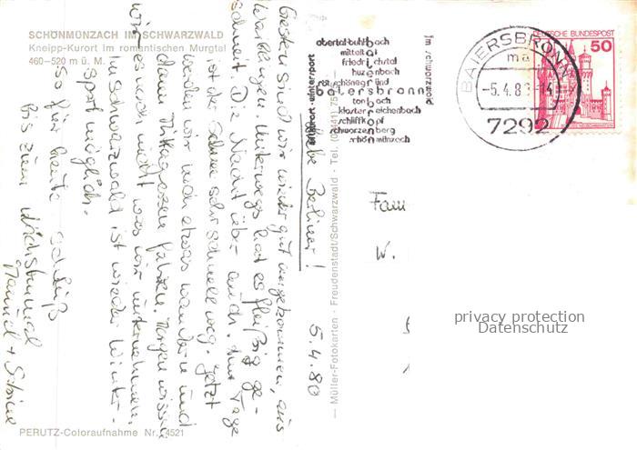 74044275 alte Postkarte Schoenmuenzach Baiersbronn Fliegeraufnahme postalisch gelaufen Erhaltung siehe scans [WerneD78] KatCode: 11110008237004