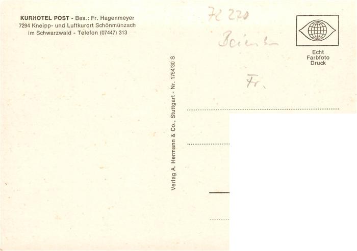 73888175 Schoenmuenzach Baiersbronn Kurhotel Post postalisch nicht gelaufen Erhaltung siehe scans [FriedD77] KatCode: 11110008237004