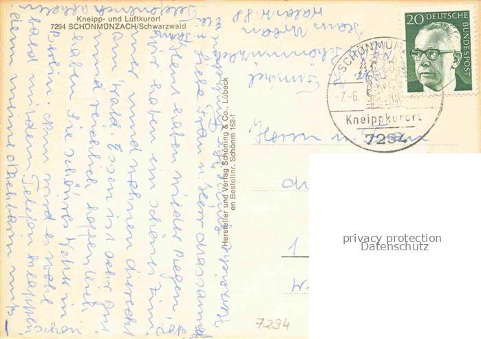 34145207 alte Postkarte Schoenmuenzach Baiersbronn Ortsansicht postalisch gelaufen Erhaltung siehe scans [WerneD78] KatCode: 11110008237004