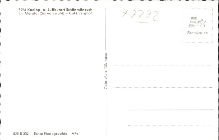 40760727 Schoenmuenzach Cafe Berghof * postalisch nicht gelaufen Alte Ansichtskarte Postkarte Katcode 11110008237004