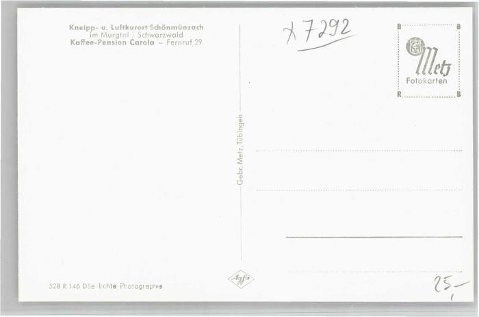 40714456 Schoenmuenzach Cafe Pension Carola * postalisch nicht gelaufen Alte Ansichtskarte Postkarte Katcode 11110008237004
