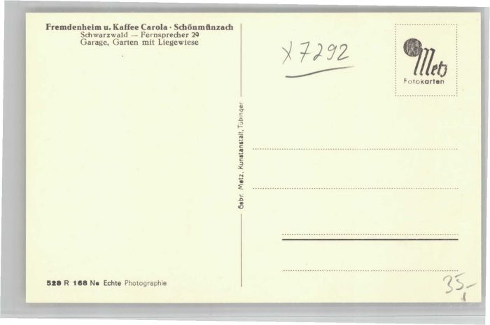 40714437 Schoenmuenzach Cafe Pension Carola * postalisch nicht gelaufen Alte Ansichtskarte Postkarte Katcode 11110008237004