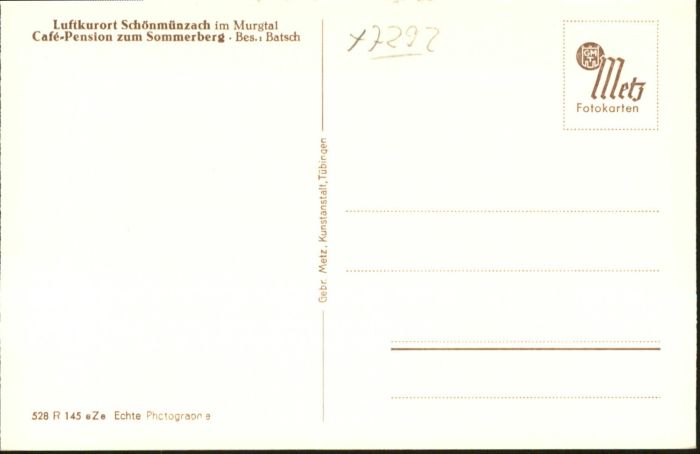 40760633 Schoenmuenzach Cafe Pension Sommerberg * postalisch nicht gelaufen Alte Ansichtskarte Postkarte Katcode 11110008237004