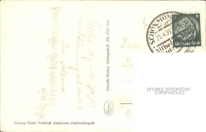 32212541 alte Postkarte Schoenmuenzach Dorf postalisch gelaufen Erhaltung siehe scans KatCode: 11110008237004