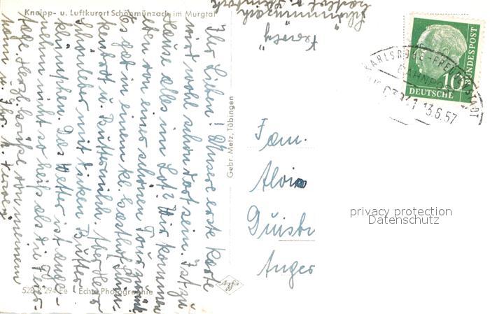 72991616 alte Postkarte Schoenmuenzach Fliegeraufnahme postalisch gelaufen Bahnpost Erhaltung siehe scans [AndreD76] KatCode: 11110008237004