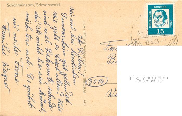 73761537 alte Postkarte Schoenmuenzach Fliegeraufnahme postalisch gelaufen Erhaltung siehe scans [FriedD77] KatCode: 11110008237004