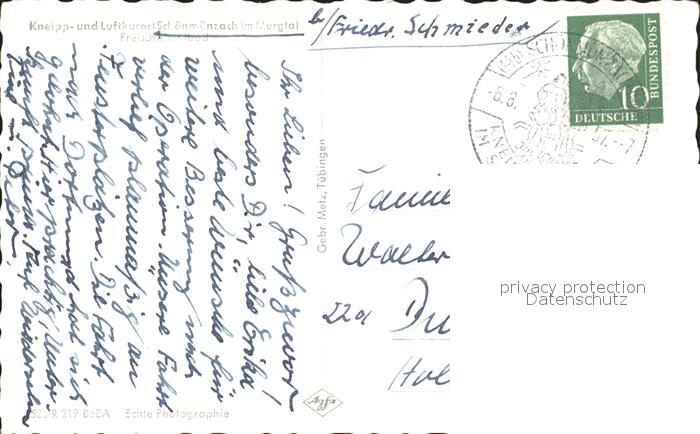 72186976 alte Postkarte Schoenmuenzach Freibad Kneipp Luftkurort im Murgtal postalisch gelaufen Erhaltung siehe scans KatCode: 11110008237004