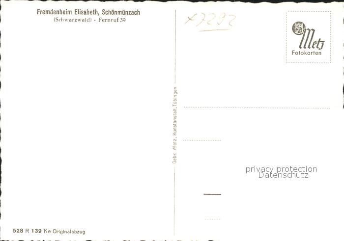 41801389 Schoenmuenzach Fremdenheim Elisabeth postalisch nicht gelaufen Erhaltung siehe scans Alte Ansichtskarte Postkarte Nata Katcode 11110008237004